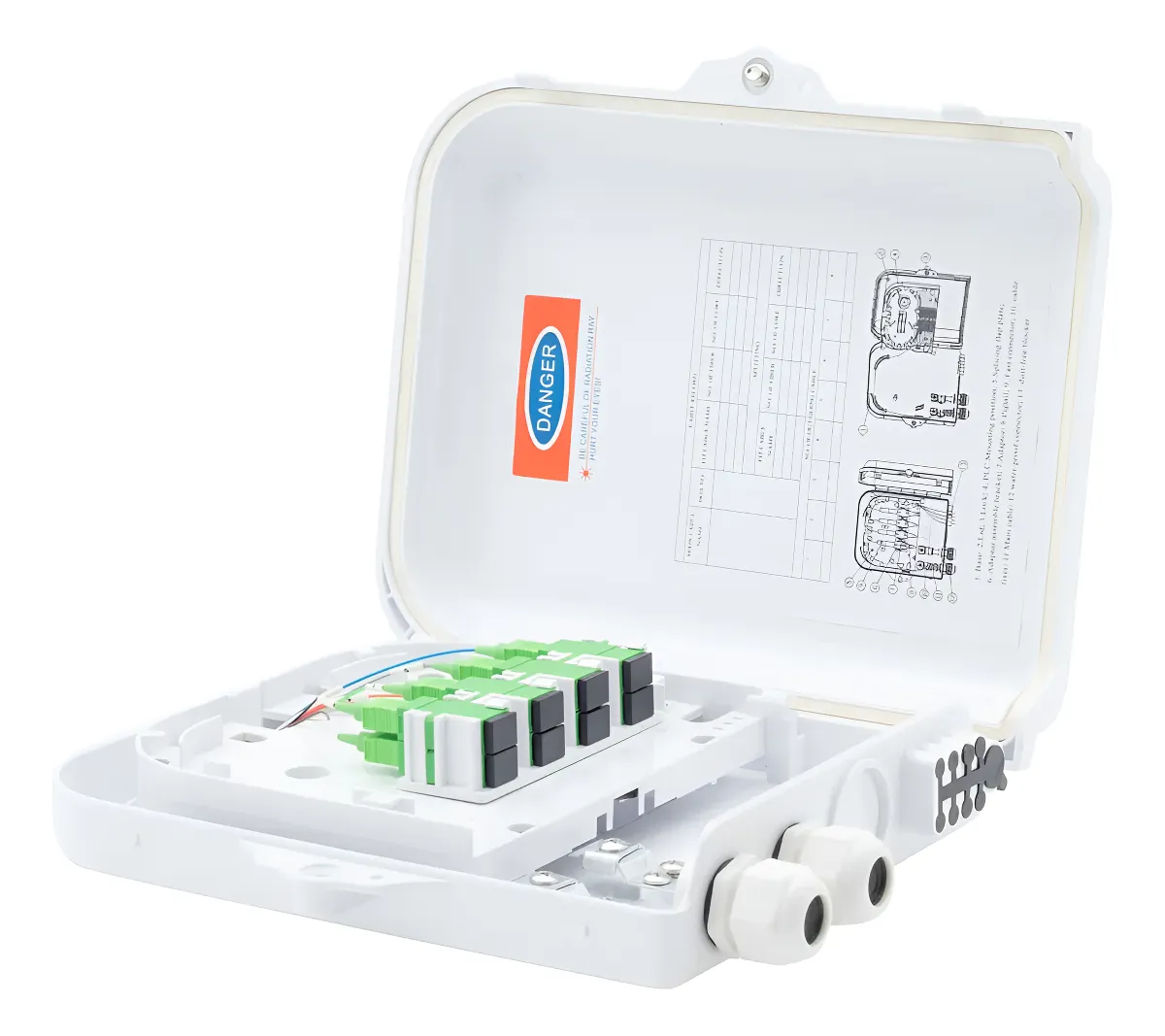 Caja Distribucion Ftth Fibra Optica 2×8 + Splitter 1×8 Glc