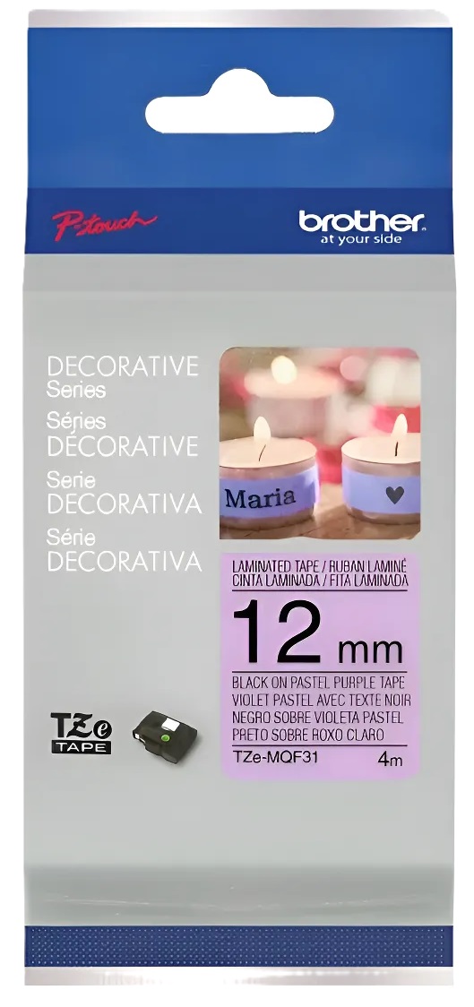 - La Cinta Brother Tze-mqf31, 12mm. Negro/Lila Pastel es la elección perfecta para quienes buscan eficiencia, calidad y un toque de color en sus etiquetas.