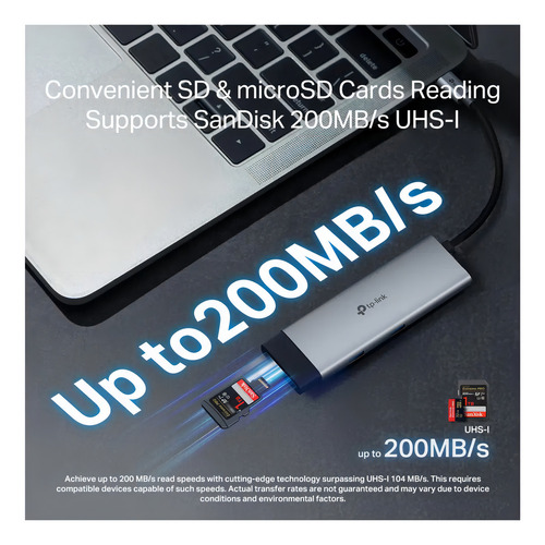 Transfiere datos fácilmente en tarjetas SD y microSD (hasta 200 MB/s).