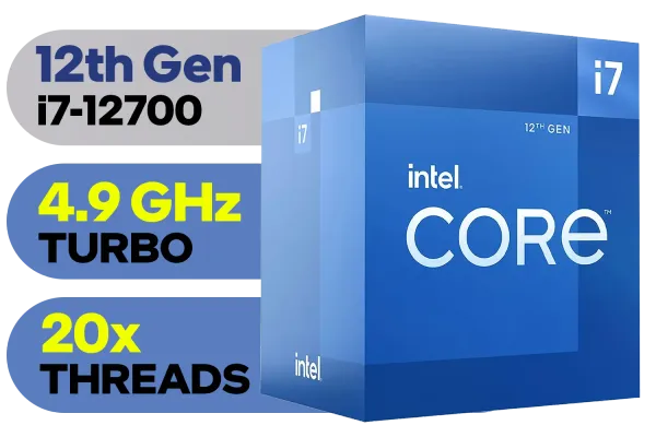 Este procesador Intel i7-12700 cuenta con 12 núcleos (8 Performance + 4 Efficient) y 20 hilos,