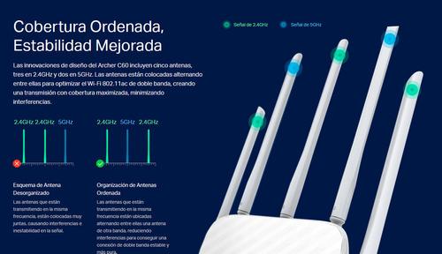 Tres antenas de 2.4GHz y dos antenas de 5GHz que crean una cobertura Wi-Fi superior