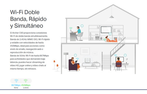 Consigue un Wi-Fi más rápido tanto en la banda de 2.4GHz (450Mbps) como en la banda de 5GHz(867Mbps)