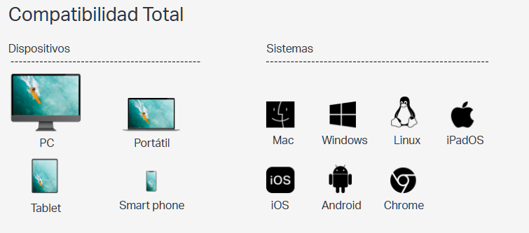 Puedes conectarlo a ordenadores de sobremesa, portátiles, teléfonos y tables compatibles con Mac OS, Windows, iPadOS, iOS, Android, Linux y Chrome OS.